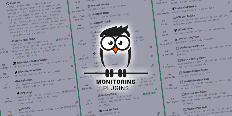 If you implement infrastructure or application monitoring, you mainly care about three things: You want to have a fast and scalable core that queues check execution and manages state changes as well as notifications. You need a collection of check plugins. You might want to visualize performance data from the past or do some kind of trend monitoring.